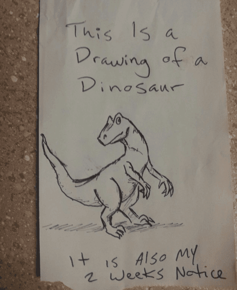 It’s a great drawing, to be honest, and it leaves you hopeful that they’ve quit to pursue more creative endeavours. They even have their resignation in writing and given adequate notice, too. For this to be legitimate the rest of the letter needs to have their name and signature.